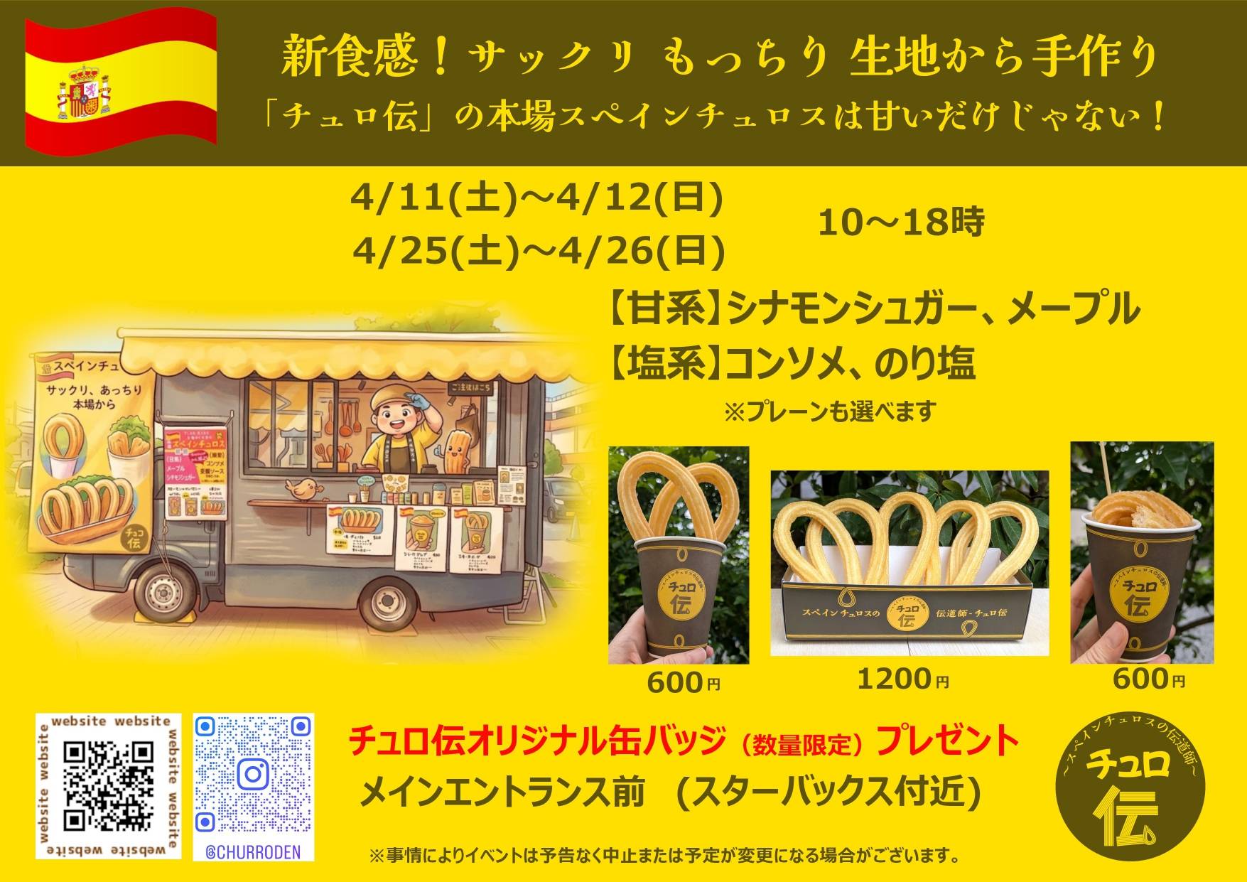 【 キッチンカー情報 】4/11(土)~12(日)・25(土)~26(日)