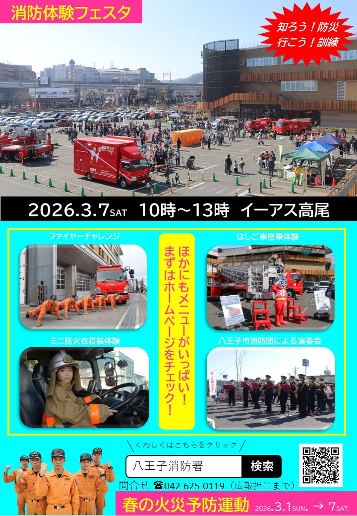 3月7日(土)。。。いよいよ。。。「消防体験フェスタ」がイーアス高尾で開催!