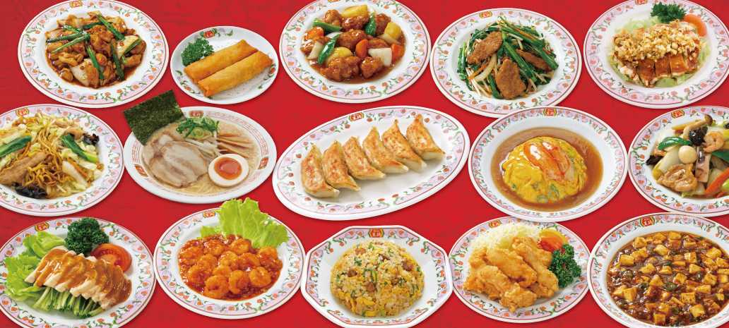 看板メニューの餃子の主要食材はすべて国産。安心・安全にお召し上がりいただけます。炒飯、酢豚、ニラレバなど、定番の中華料理をはじめ、小皿料理のジャストサイズメニューやにんにく激増し餃子など、バラエティ豊富なメニューをお楽しみください!