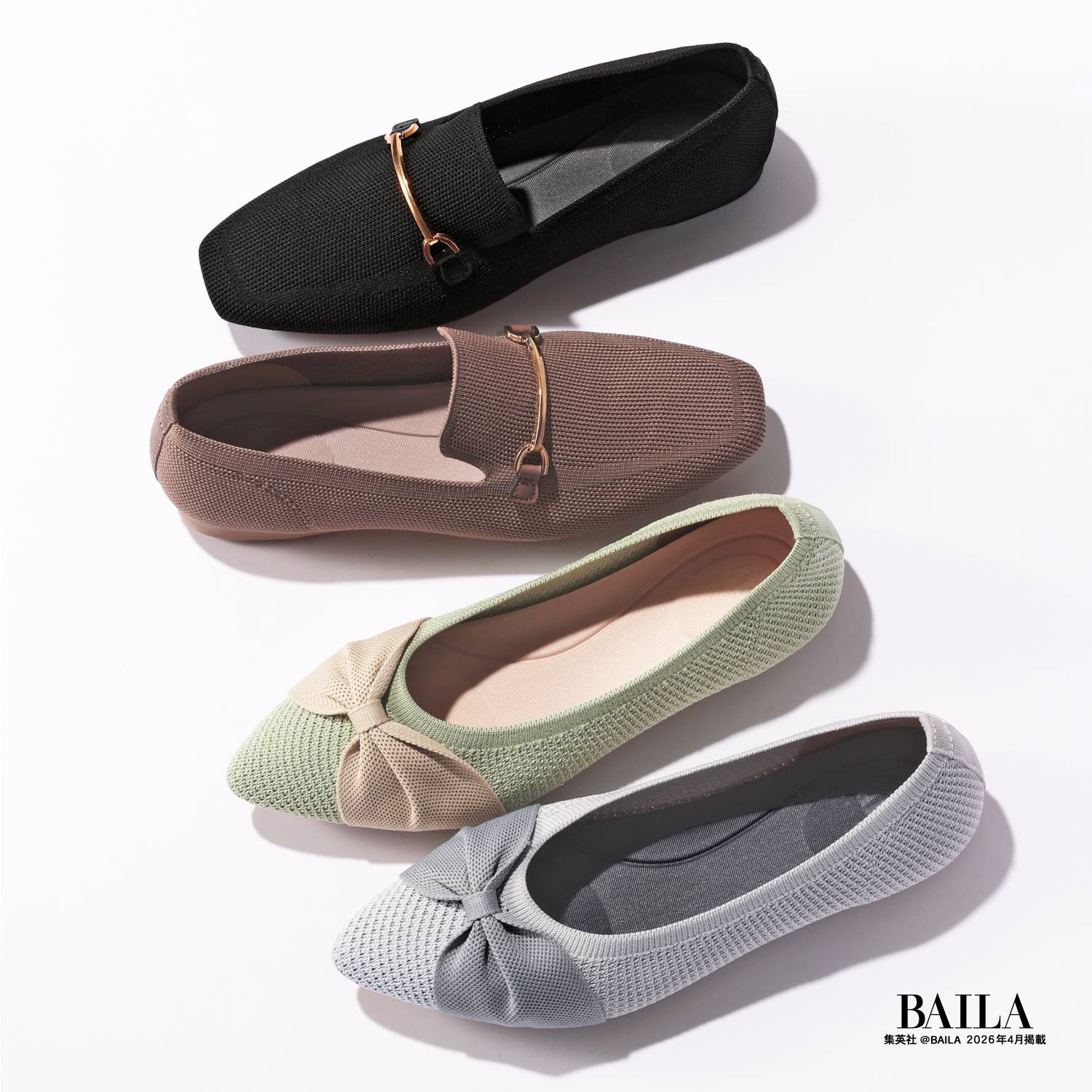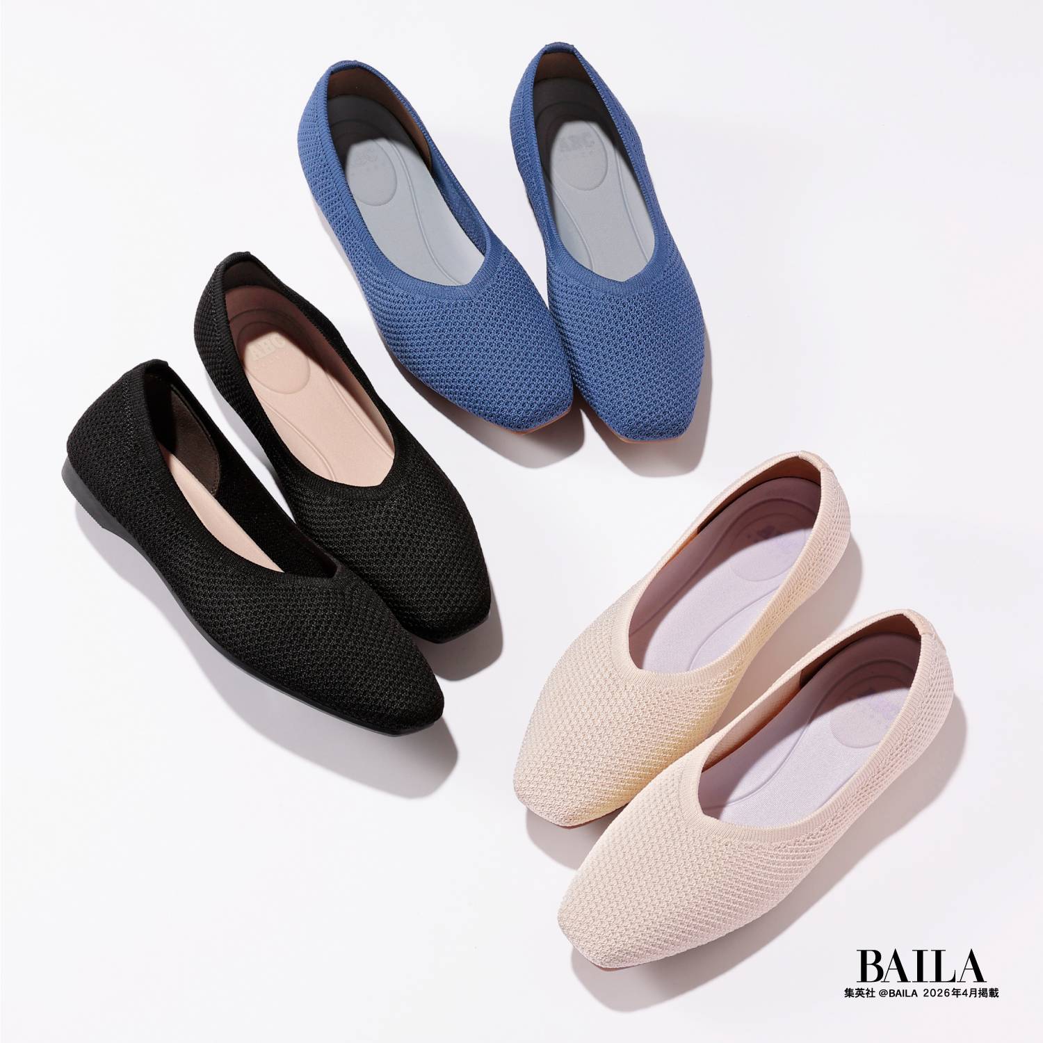 ニット素材のアッパーと柔らかいインソールでどんな動きにもついてくる、まるで素足のように快適に履けるニットパンプス。